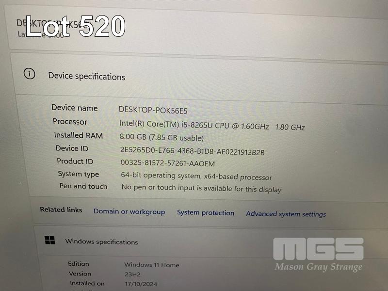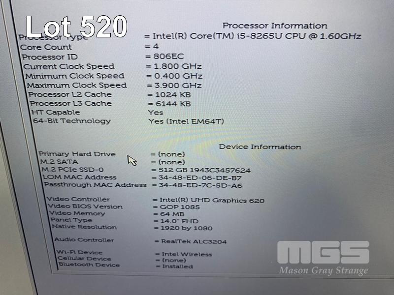 LAPTOP, DELL LATITUDE 5400, CORE i5 8265U (8TH GEN) @ 1.6GHz, 8GB DDR4 RAM, 512GB NVMe M.2 SSD, 14" WIDESCREEN (1920x1080), INTEL UHD GRAPHICS 620, Wi-Fi, BLUETOOTH, WINDOWS 11 HOME INSTALLED (NO POWER SUPPLY) (NOTE: MISSING "A" KEY, MARKS ON SCREEN) S/N:BN0CYY2