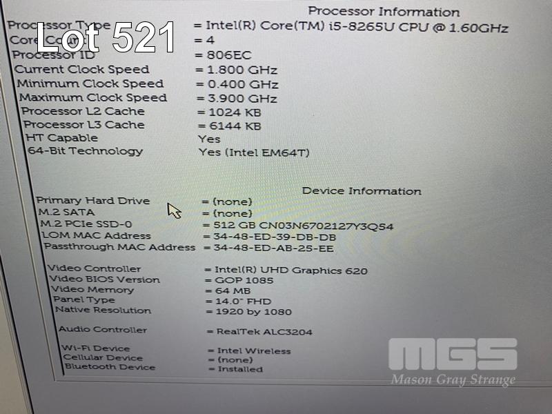 LAPTOP, DELL LATITUDE 5400, CORE i5 8265U (8TH GEN) @ 1.6GHz, 8GB DDR4 RAM, 512GB NVMe M.2 SSD, 14" WIDESCREEN (1920x1080), INTEL UHD GRAPHICS 620, Wi-Fi, BLUETOOTH, WINDOWS 11 HOME INSTALLED (NO POWER SUPPLY) (NOTE: TOUCHPAD BUTTON FAULTY, MARKS & SCRATCH ON SCREEN) S/N:BKM9N13