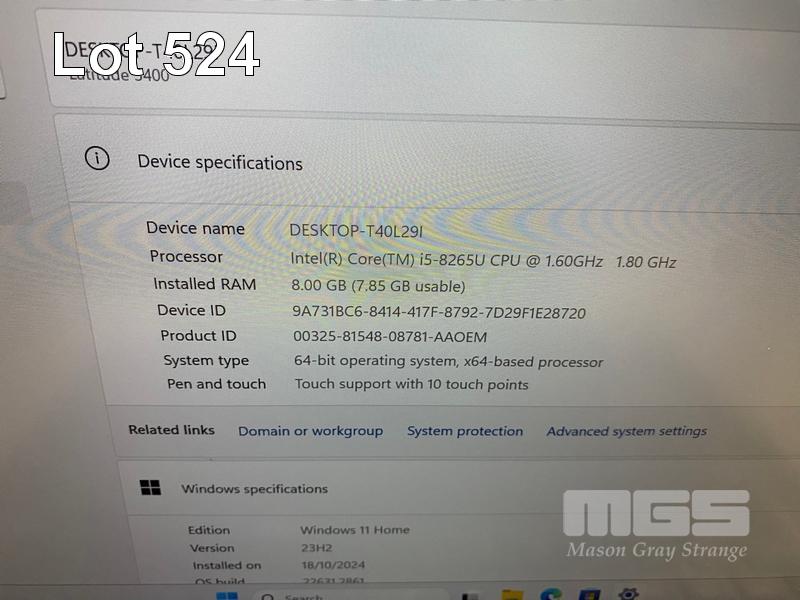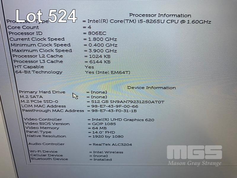 LAPTOP, DELL LATITUDE 5400, CORE i5 8265U (8TH GEN) @ 1.6GHz, 8GB DDR4 RAM, 512GB NVMe M.2 SSD, 14" WIDESCREEN (1920x1080), INTEL UHD GRAPHICS 620, Wi-Fi, BLUETOOTH, WINDOWS 11 HOME INSTALLED (NO POWER SUPPLY) (NOTE: BATTERY NOT HOLDING CHARGE, MARKS ON SCREEN) S/N:G6WX2Z2