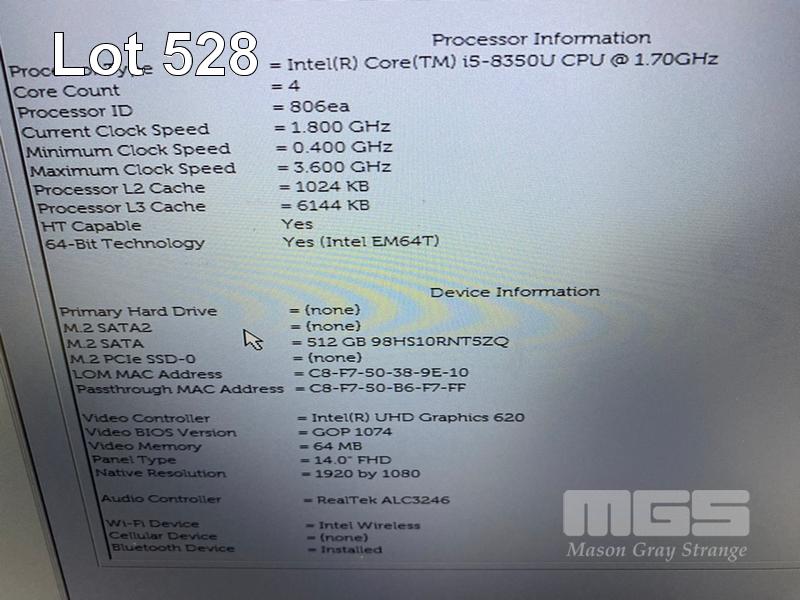 LAPTOP, DELL LATITUDE 5490, CORE i5 8350U (8TH GEN) @ 1.7GHz, 8GB DDR4 RAM, 512GB M.2 SSD, 14" WIDESCREEN (1920x1080), INTEL UHD GRAPHICS 620, Wi-Fi, BLUETOOTH, WINDOWS 11 HOME INSTALLED & POWER SUPPLY (NOTE: MARKS ON SCREEN) S/N:HYQJNF2