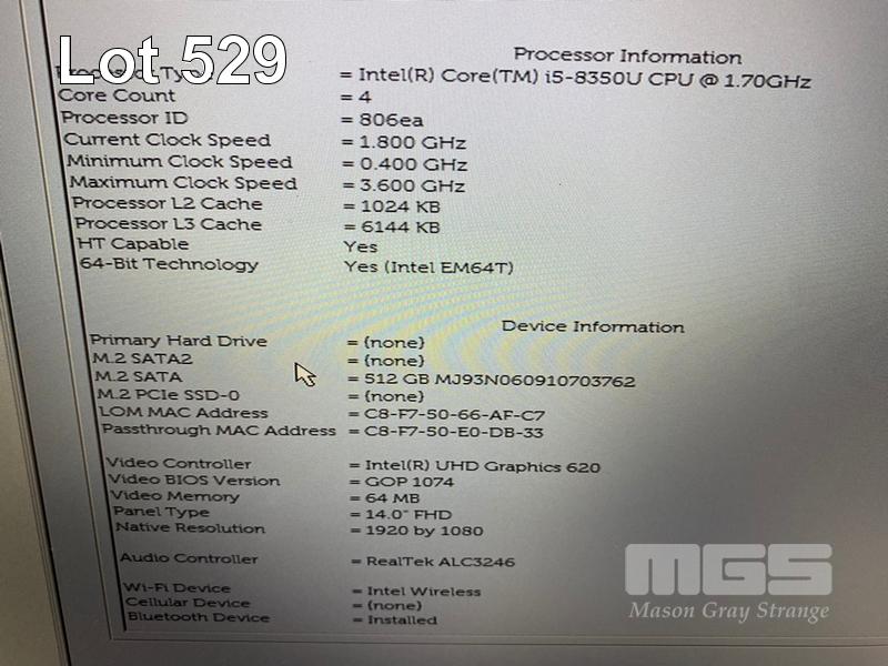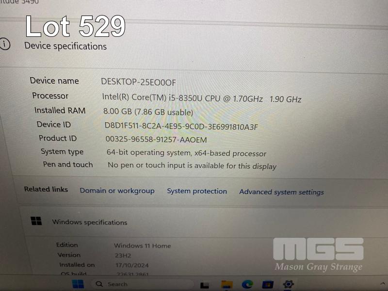 LAPTOP, DELL LATITUDE 5490, CORE i5 8350U (8TH GEN) @ 1.7GHz, 8GB DDR4 RAM, 512GB M.2 SSD, 14" WIDESCREEN (1920x1080), INTEL UHD GRAPHICS 620, Wi-Fi, BLUETOOTH, WINDOWS 11 HOME INSTALLED & POWER SUPPLY (NOTE: MARKS ON SCREEN) S/N:8MFTNV2