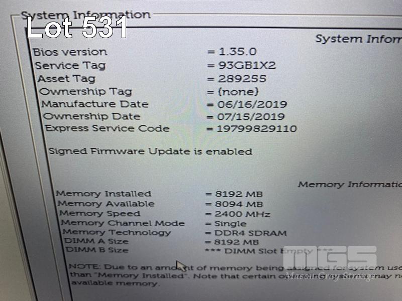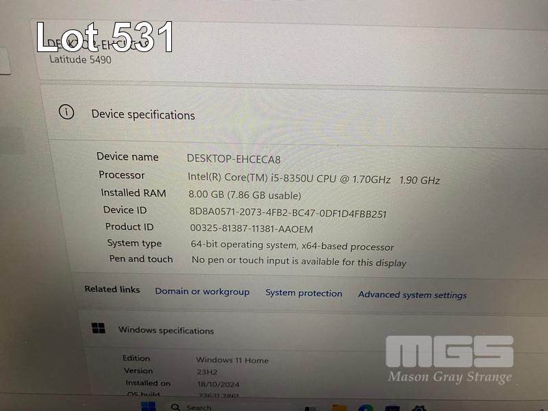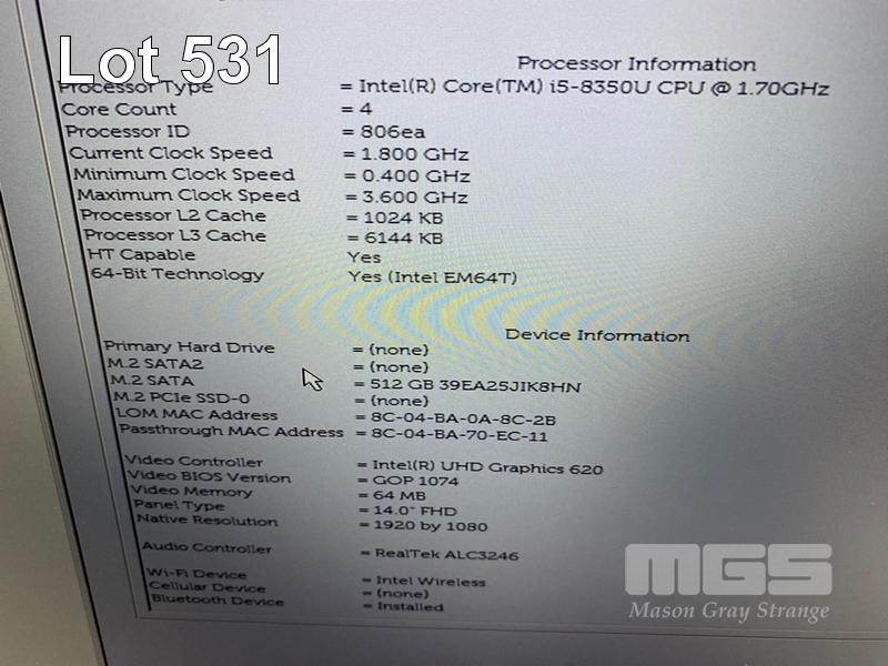LAPTOP, DELL LATITUDE 5490, CORE i5 8350U (8TH GEN) @ 1.7GHz, 8GB DDR4 RAM, 512GB M.2 SSD, 14" WIDESCREEN (1920x1080), INTEL UHD GRAPHICS 620, Wi-Fi, BLUETOOTH, WINDOWS 11 HOME INSTALLED (NO POWER SUPPLY) (NOTE: MARKS ON SCREEN) S/N:93GB1X2