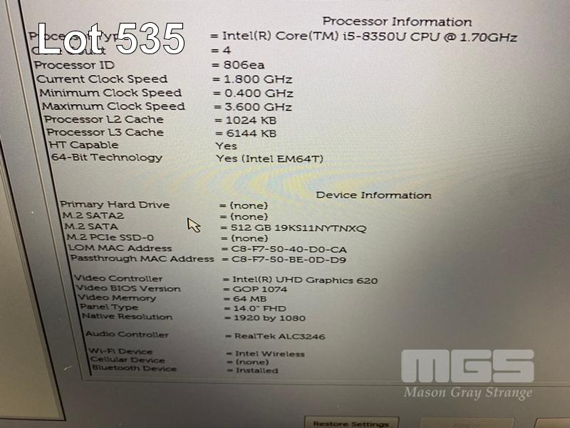 LAPTOP, DELL LATITUDE 5490, CORE i5 8350U (8TH GEN) @ 1.7GHz, 8GB DDR4 RAM, 512GB M.2 SSD, 14" WIDESCREEN (1920x1080), INTEL UHD GRAPHICS 620, Wi-Fi, BLUETOOTH, WINDOWS 11 HOME INSTALLED (NO POWER SUPPLY) (NOTE: BATTERY NOT HOLDING CHARGE) S/N:JRWPVT2