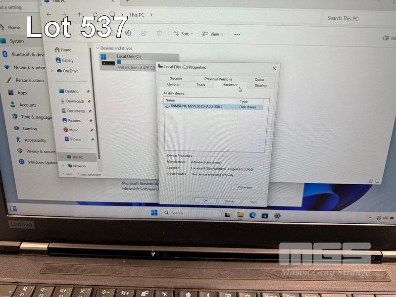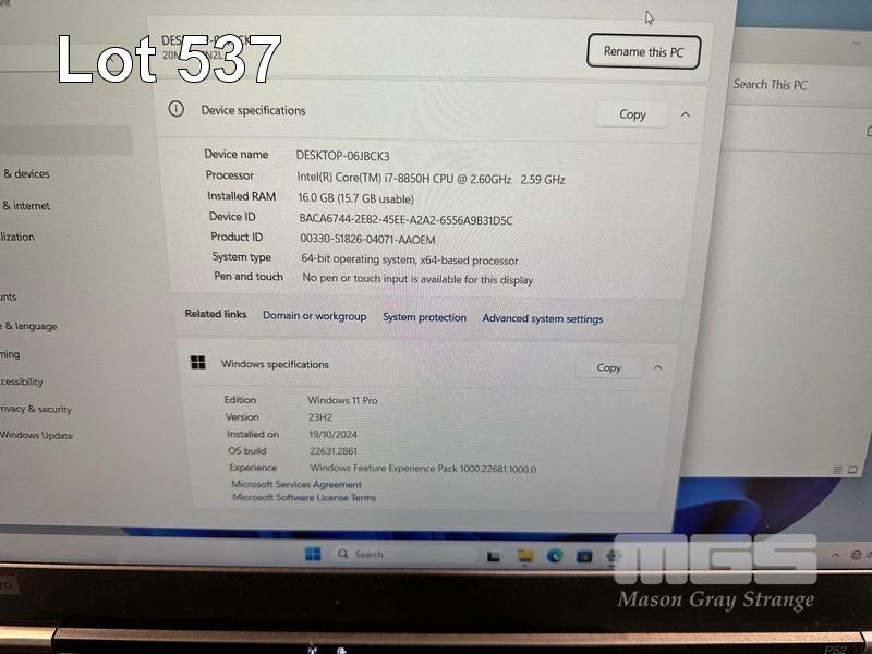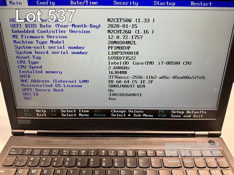 LAPTOP, LENOVO THINKPAD P52 MOBILE WORKSTATION, TYPE 20MA, CORE i7 8850H (8TH GEN) @ 2.6GHz, 16GB DDR4 RAM, 512GB NVMe M.2 SSD, 15.6" WIDESCREEN (1920x1080), 4GB NVIDIA QUADRO P2000 VIDEO, Wi-Fi, BLUETOOTH, WINDOWS 11 PRO INSTALLED (NO POWER SUPPLY) (NOTE: DAMAGE TO CASING, TOUCHPAD WORN, MARKS & SPOTS ON SCREEN) S/N:PF1M8EVP