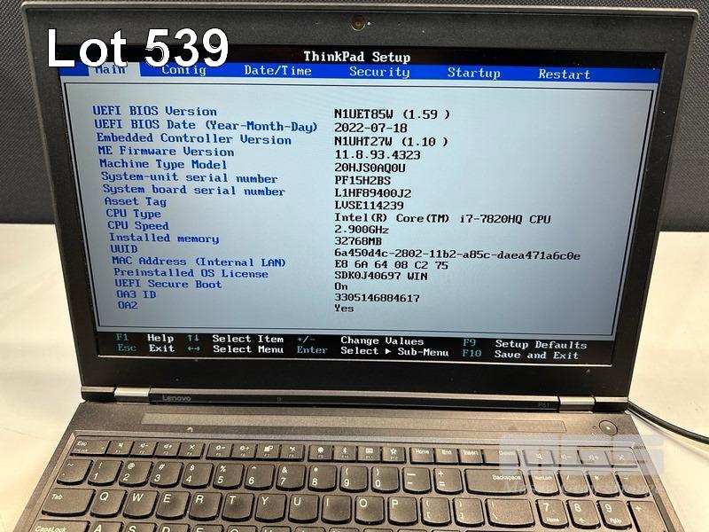 LAPTOP, LENOVO THINKPAD P51 MOBILE WORKSTATION, TYPE 20HJ, CORE i7 7820HQ (7TH GEN) @ 2.9GHz, 32GB DDR4 RAM, 512GB NVMe M.2 SSD, 15.6" WIDESCREEN (1920x1080), 4GB NVIDIA QUADRO M2200 VIDEO, Wi-Fi, BLUETOOTH, WINDOWS 10 PRO INSTALLED (NO POWER SUPPLY) (NOTE: CRACK LINE ON CASING, BATTERY NOT CHARGING) S/N:PF15H2BS