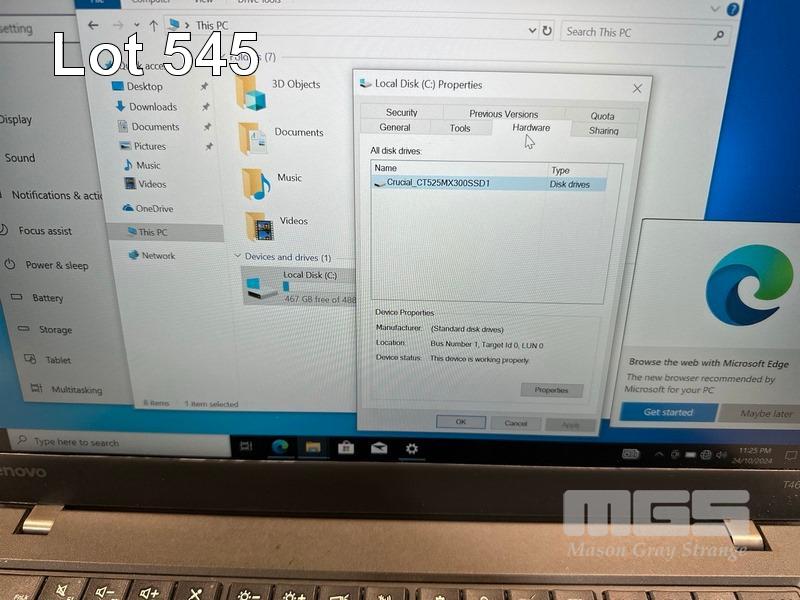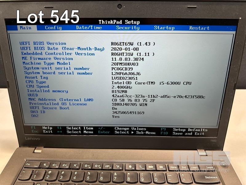 LAPTOP, LENOVO THINKPAD T460, TYPE 20FM, CORE i5 6300U (6TH GEN) @ 2.4GHz, 8GB DDR3 RAM, 525GB SSD, 14" WIDESCREEN (1920x1080), INTEL HD VIDEO, Wi-Fi, BLUETOOTH, WINDOWS 10 PRO INSTALLED & POWER SUPPLY (NOTE: MINOR MARKS ON SCREEN) S/N:PC0GCD39
