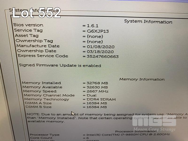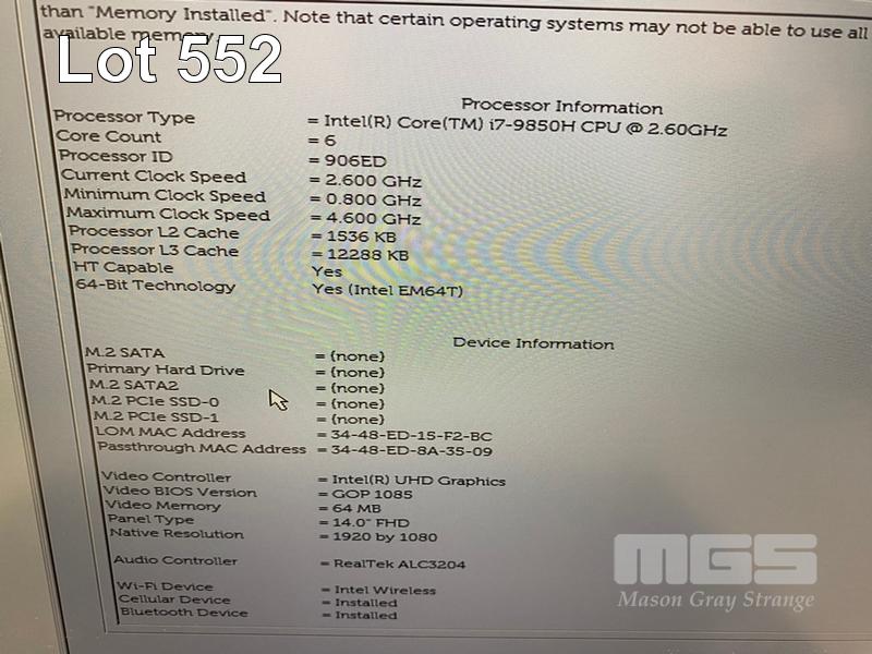 LAPTOP, DELL LATITUDE 5401, CORE i7 9850H (9TH GEN) @ 2.6GHz, 32GB DDR4 RAM, NO HDD, 14" WIDESCREEN (1920x1080) & POWER SUPPLY (NOTE: MARKS ON SCREEN) S/N:G6XJP13