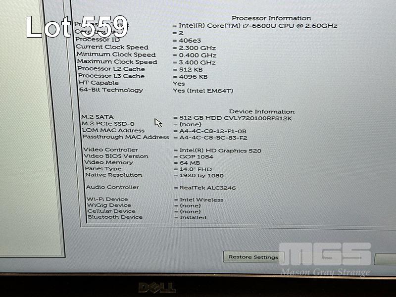 LAPTOP, DELL LATITUDE 7480, CORE i7 6600U (6TH GEN) @ 2.6GHz, 16GB DDR4 RAM, 512GB M.2 SSD, 14" WIDESCREEN (1920x1080), INTEL HD GRAPHICS 520, Wi-Fi, BLUETOOTH, WINDOWS 10 HOME INSTALLED & POWER SUPPLY S/N:C9Y28H2