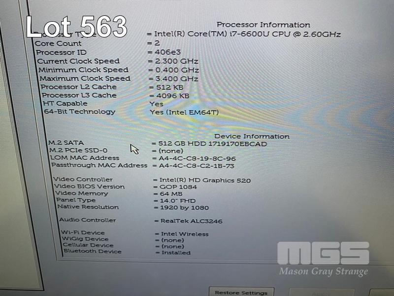 LAPTOP, DELL LATITUDE 7480, CORE i7 6600U (6TH GEN) @ 2.6GHz, 16GB DDR4 RAM, 512GB M.2 SSD, 14" WIDESCREEN (1920x1080), INTEL HD GRAPHICS 520, Wi-Fi, BLUETOOTH, WINDOWS 10 HOME INSTALLED & POWER SUPPLY (NOTE: MARKS ON SCREEN) S/N:8XPSBH2