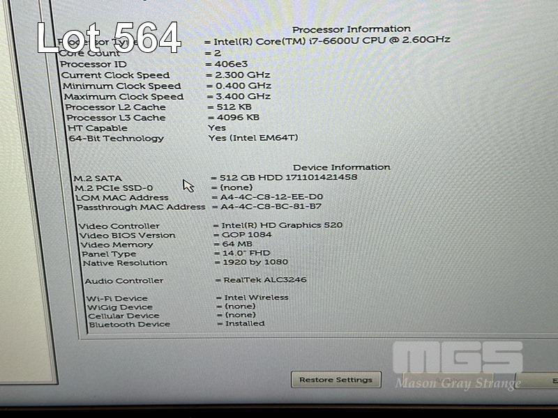 LAPTOP, DELL LATITUDE 7480, CORE i7 6600U (6TH GEN) @ 2.6GHz, 16GB DDR4 RAM, 512GB M.2 SSD, 14" WIDESCREEN (1920x1080), INTEL HD GRAPHICS 520, Wi-Fi, BLUETOOTH, WINDOWS 10 HOME INSTALLED & POWER SUPPLY (NOTE: BATTERY NOT HOLDING CHARGE) S/N:7H479H2