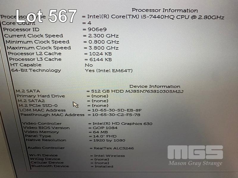 LAPTOP, DELL LATITUDE 5480, CORE i5 7440HQ (7TH GEN) @ 2.8GHz, 8GB DDR4 RAM, 512GB M.2 SSD, 14" WIDESCREEN (1920x1080), INTEL HD GRAPHICS 630, Wi-Fi, BLUETOOTH, WINDOWS 10 HOME INSTALLED & POWER SUPPLY S/N:506DVP2