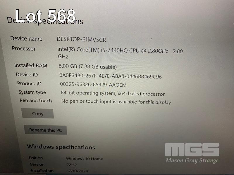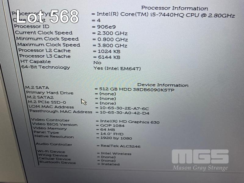 LAPTOP, DELL LATITUDE 5480, CORE i5 7440HQ (7TH GEN) @ 2.8GHz, 8GB DDR4 RAM, 512GB M.2 SSD, 14" WIDESCREEN (1920x1080), INTEL HD GRAPHICS 630, Wi-Fi, BLUETOOTH, WINDOWS 10 HOME INSTALLED & POWER SUPPLY (NOTE: BATTERY NOT HOLDING CHAGE, MINOR MARKS ON SCREEN) S/N:3C17QN2