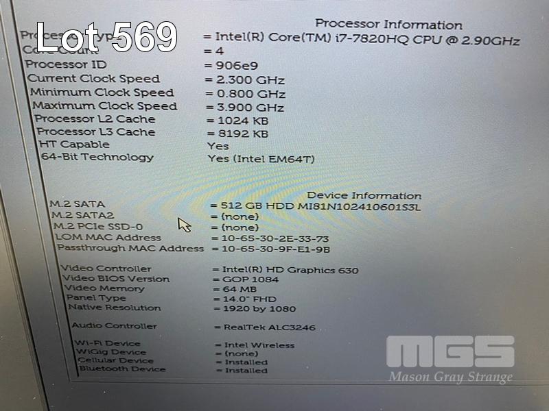 LAPTOP, DELL LATITUDE 5480, CORE i7 7820HQ (7TH GEN) @ 2.9GHz, 32GB DDR4 RAM, 512GB M.2 SSD, 14" WIDESCREEN (1920x1080), 2GB NVIDIA GEFORCE 930MX VIDEO, INTEL HD GRAPHICS 630, Wi-Fi, CELLULAR, BLUETOOTH, WINDOWS 10 PRO INSTALLED (NO POWER SUPPLY) (NOTE: BATTERY NOT HOLDING CHARGE, MINOR MARKS ON SCREEN) S/N:698VPN2