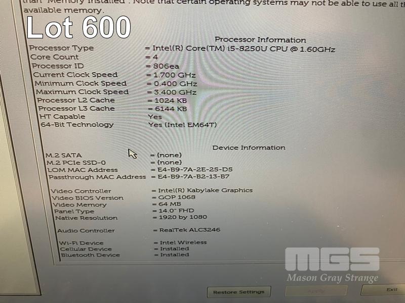 LAPTOP, DELL LATITUDE 7490, CORE i5 8250U (8TH GEN) @ 1.6GHz, 8GB DDR4 RAM, NO HDD, 14" WIDESCREEN (1920x1080) & POWER SUPPLY S/N:BFQ9LQ2