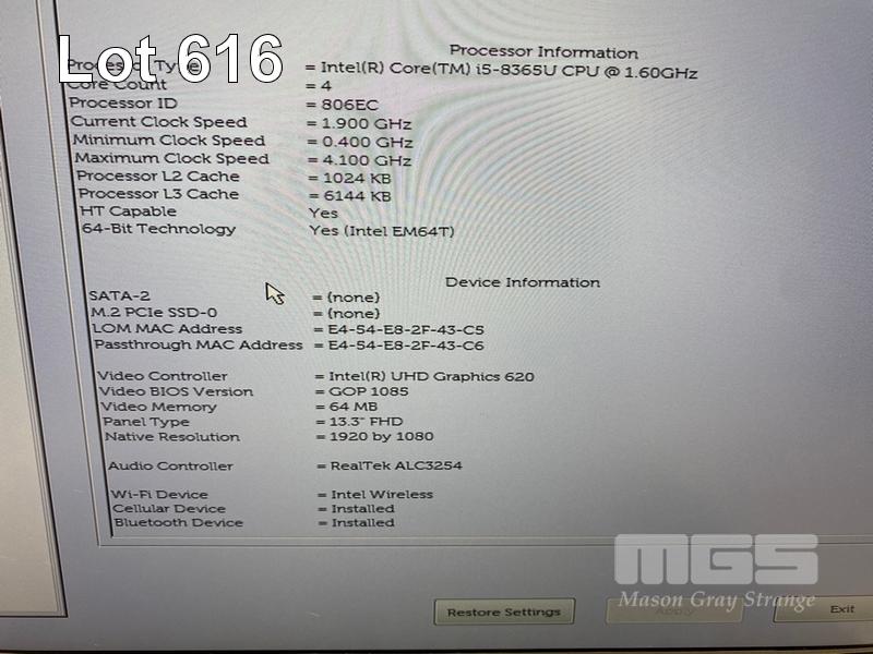 LAPTOP, DELL LATITUDE 5300, CORE i5 8365U (8TH GEN) @ 1.6GHz, 8GB DDR4 RAM, NO HDD, 13.3" WIDESCREEN (1920x1080) & POWER SUPPLY S/N:2L6GNT2