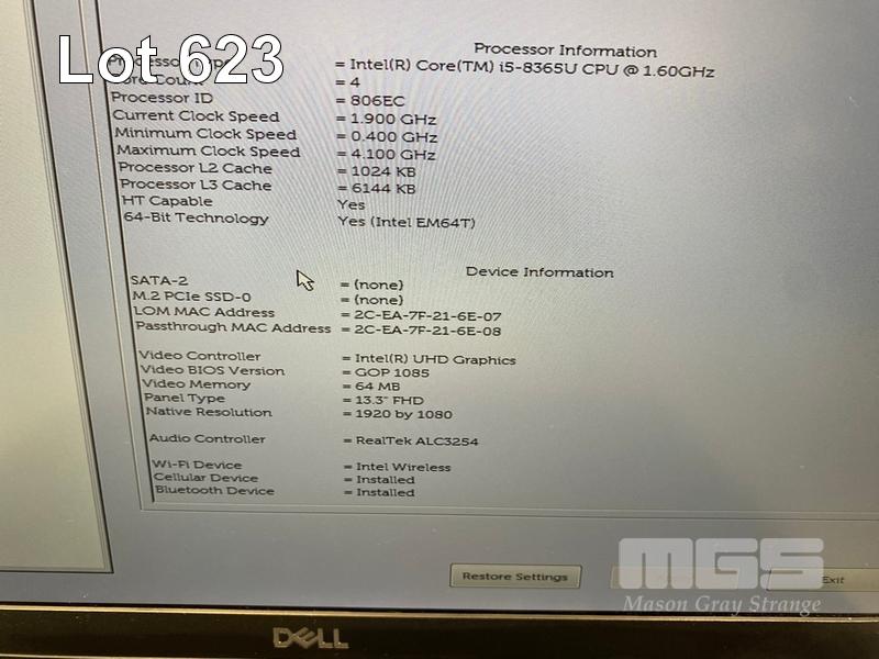 LAPTOP, DELL LATITUDE 5300, CORE i5 8365U (8TH GEN) @ 1.6GHz, 8GB DDR4 RAM, NO HDD, 13.3" WIDESCREEN (1920x1080) & POWER SUPPLY (NOTE: MARKS ON SCREEN) S/N:6TRWNW2