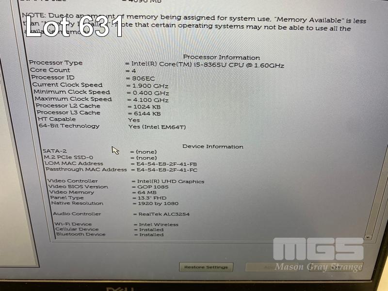 LAPTOP, DELL LATITUDE 5300, CORE i5 8365U (8TH GEN) @ 1.6GHz, 8GB DDR4 RAM, NO HDD, 13.3" WIDESCREEN (1920x1080) & POWER SUPPLY (NOTE: SWOLLEN BATTERY, MARKS ON SCREEN) S/N:CJ6GNT2