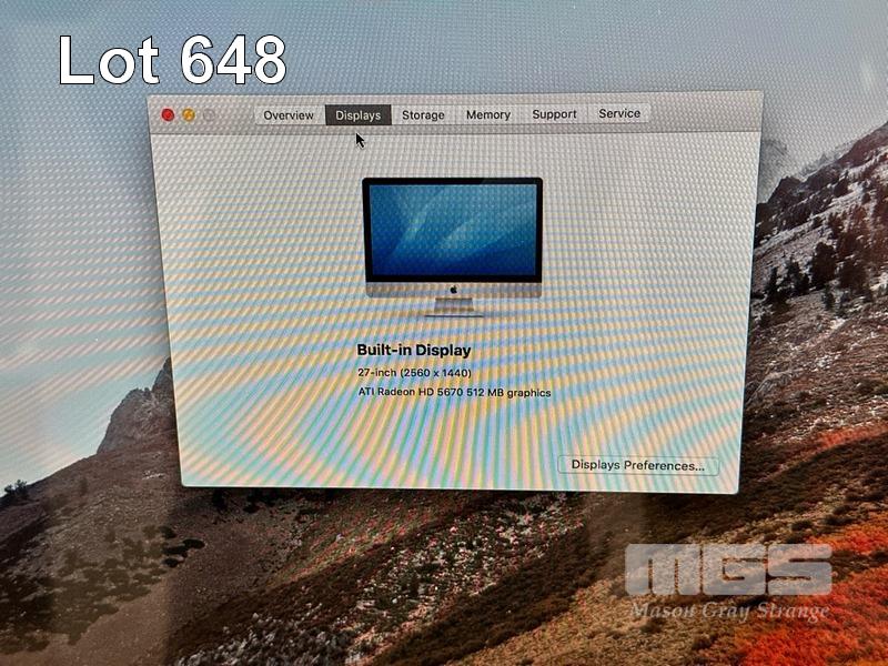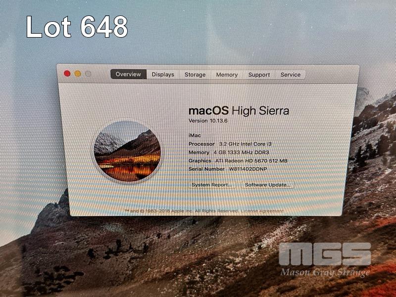 APPLE iMAC (A1312), CORE i3 550 @ 3.2GHz, 4GB DDR3 RAM, 1TB SATA HDD, DVD-RW, BUILT-IN 27" DISPLAY (2560x1440), MAC OS X 10.13 INSTALLED (NO KEYBOARD, NO MOUSE, NO CABLE) (NOTE: MISSING GLASS S/N:W811402DDNP