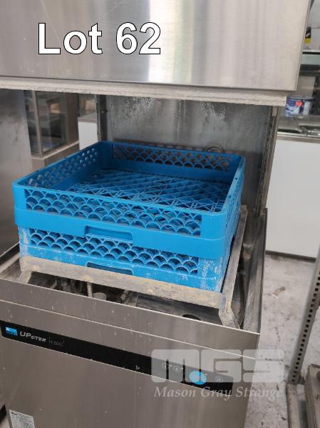 1 X MEIKO UPSTER H500 PASSTHROUGH DISHWASHER. 2 X TRAY RACKS. 690 X 850 X 1,500 - 2,000 MM (W D H). 415V.