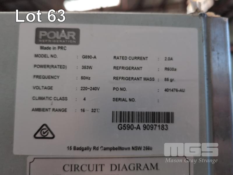 1 X POLAR G-SERIES 440 LITRE SINGLE DOOR UPRIGHT FRIDGE. STAINLESS STEEL. MODEL G590-A. 670 X 700 X 1,940 MM (W D H). 240V.