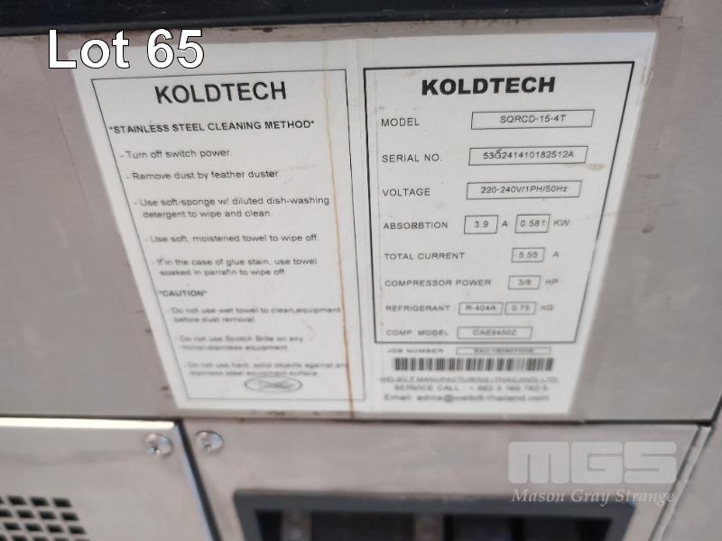 1 X KOLDTECH REFRIGERATED DISPLAY CABINET. MODEL SQRCD-15-4-T. 1,500 X 740 X 1,350 MM (W D H). 240V. ** ALL FAULTS - ELECTRICAL FAULT - HIGH LOAD ON COMPRESSOR START **