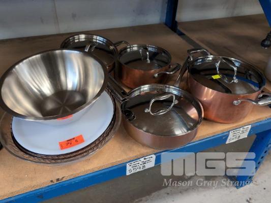 QUANTITY COPPER & STAINLESS STEEL SAUCEPANS, BOWLS, ETC