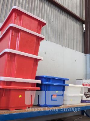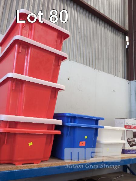 9 X ASSORTED REUSABLE FOOD CRATES, 6 X LIDS.