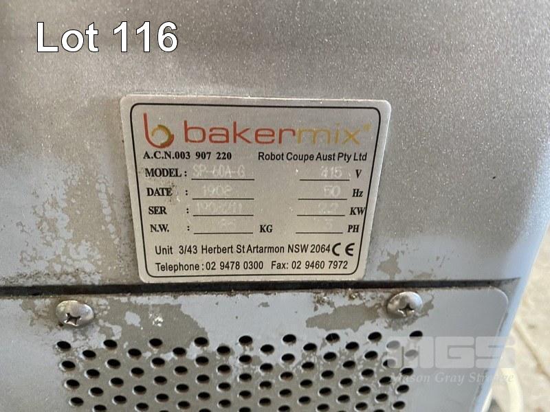 1 X PLANETARY MIXER, ROBOT COUPE, BAKERMIX MOD: SP-60A-G 60 LITRE, 415V W/ HOOK, WHISK & PADDLE ATTACHMENTS & BOWL TROLLEY.
