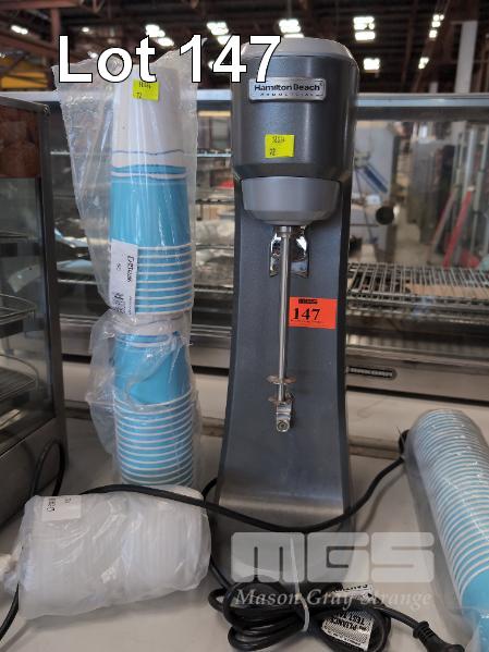 MILKSHAKE MACHINE, HAMILTON BEACH WITH CUPS & LIDS