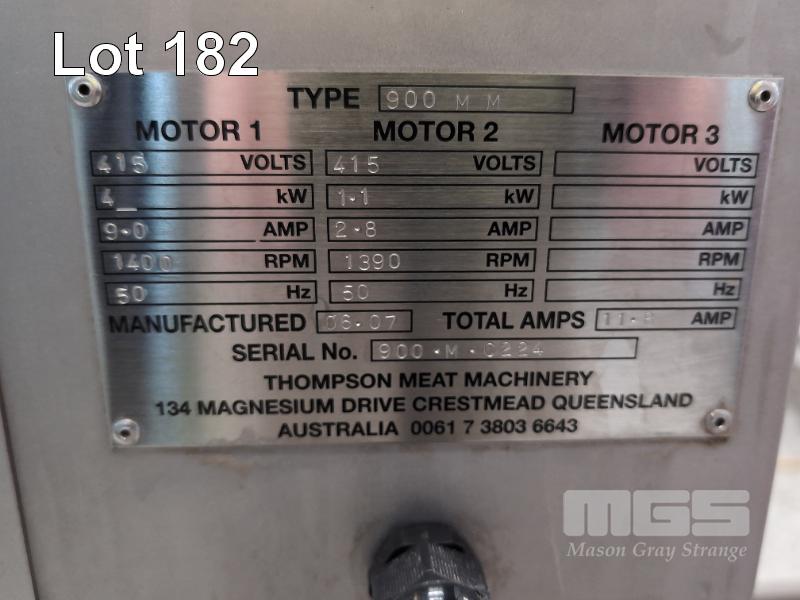 1 X THOMPSON 900 SERIES BUTCHER'S MIXER MINCER WITH DOME LID. TYPE 900 MM. SN 900.M.0224. DOM 06.07. 980 X 980 X 1,200 MM (W D H). 415V.