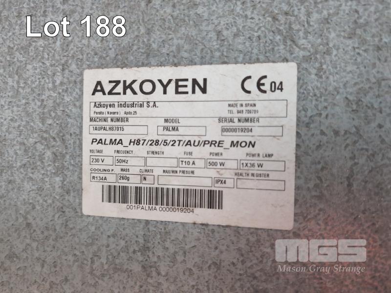 1 X AZKOYEN PALMA H87 28-SLOT REFRIGERATED VENDING MACHINE. WITH KEYS. 865 X 860 X 1,830 (W D H). 240V.