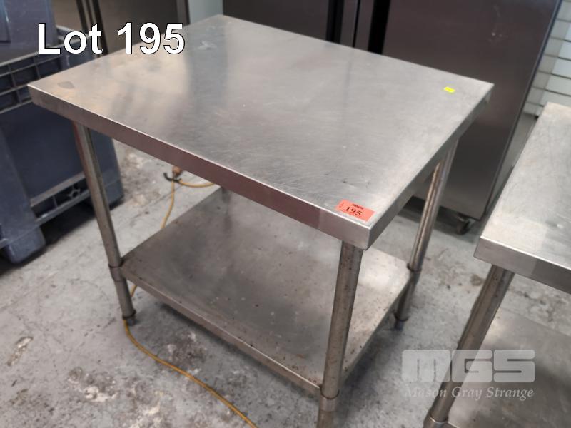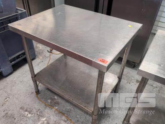 1 X BUTCHER'S STAINLESS STEEL PROCESS/ CHOPPING BENCH WITH UNDER SHELF. 900 X 700 X 920 MM (W D H).