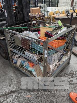 OFFICE SUNDRIES, ELECTRICAL, LUNCHROOM, GARDEN HOSE & FITTINGS, PPE, LAPTOP, PRINTER ETC. CONTENTS 1 X CAGE. CAGE NOT INCLUDED