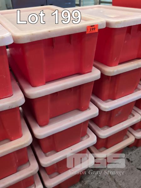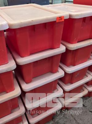 5 X 52 LITRE REUSABLE STACK & NEST FOOD CRATES WITH LIDS. RED.