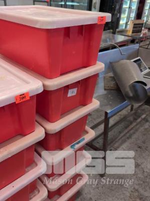 6 X 52 LITRE REUSABLE STACK & NEST FOOD CRATES WITH LIDS. RED.