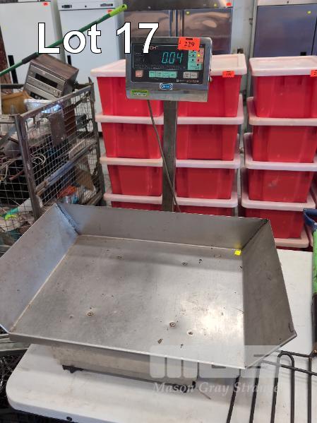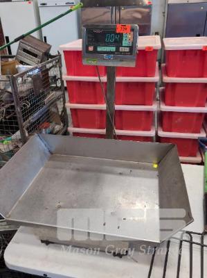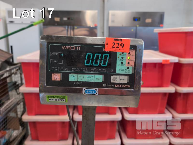 1 X DIGITAL PLATFORM SCALE WITH CUSTOM WEIGHING TRAY. MODEL ISHIDA MTX-150W. VARIABLE CAPACITY UP TO 150KG.