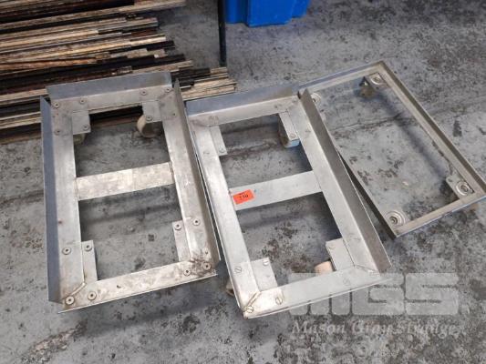 3 X STAINLESS STEEL HEAVY DUTY RECTANGULAR TUB TROLLEYS. ** ALL THREE MISSING A CASTOR WHEEL **