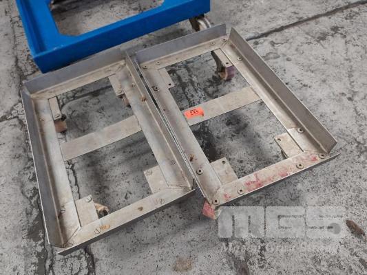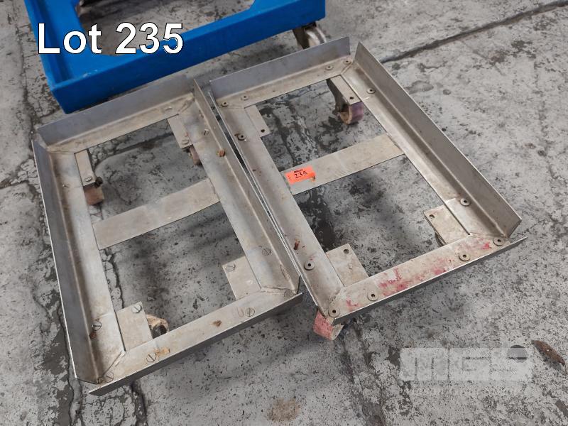 2 X STAINLESS STEEL HEAVY DUTY RECTANGULAR TUB TROLLEYS. 670 X 400 MM.