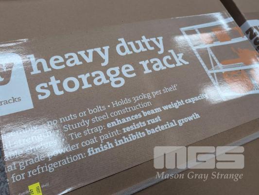 STORAGE RACK 1960 x 610 x 1830mm HEAVY DUTY, RATED 320KG PER SHELF, 4 TIER NEW IN BOX