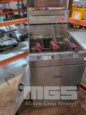 1 X FED FRYMAX FREESTANDING LPG DEEP FRYER. MODEL RC-500E. 540 X 770 X 1,400 MM (W D H). WITH COVER AND 3 X BASKETS