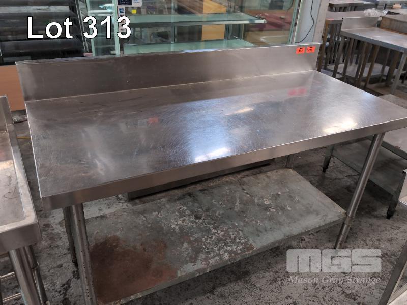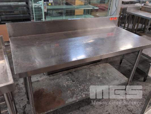 1 X STAINLESS STEEL COMMERCIAL PREP BENCH WITH SPLASHBACK & GALV UNDERSHELF, 1,500 x 700 x 900 MM (W D H) ** SOME RUST ON UNDERSHELF **