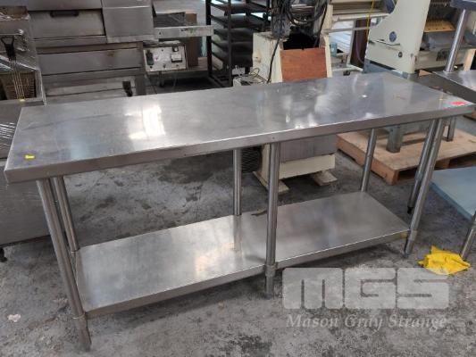 1 X STANLESS STEEL COMMERCIAL KITCHEN PREP BENCH WITH UNDERSHELF. 1,825 X 610 X 905 MM (W D H).