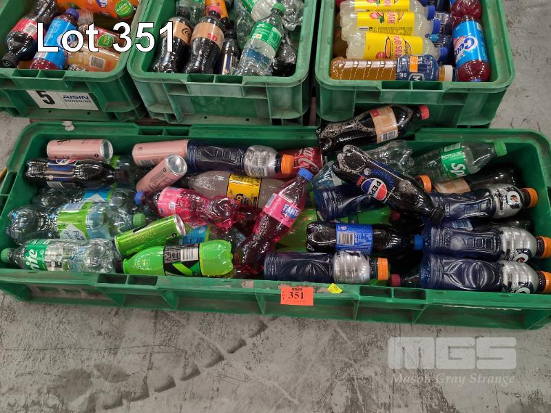 SELECTION OF CONVENIENCE STORE GROCERY STOCK. ASSORTED BEVERAGES. INCLUDES SPRITE, FANTA, MAXIMUS, PEPSI, COKE ETC CONTENTS 3 X GREEN TUBS & 1 X CARTON. GREEN TUBS NOT INCLUDED.