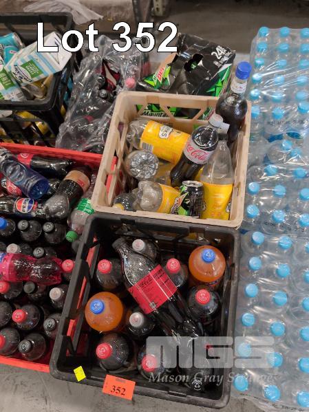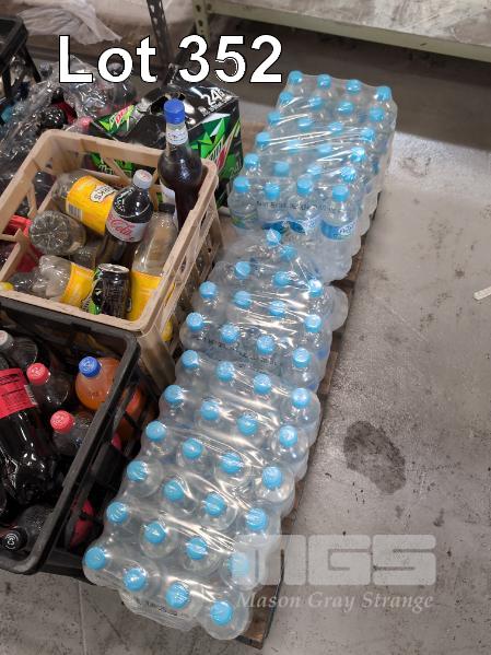 SELECTION OF CONVENIENCE STORE GROCERY STOCK. ASSORTED BEVERAGES. INCLUDES BOTTLED WATER, COKE, MOUNTAIN DEW, UHT MILK, KIRKS SOFTDRINKS ETC CONTENTS 1 X PALLET. CRATES NOT INCLUDED.