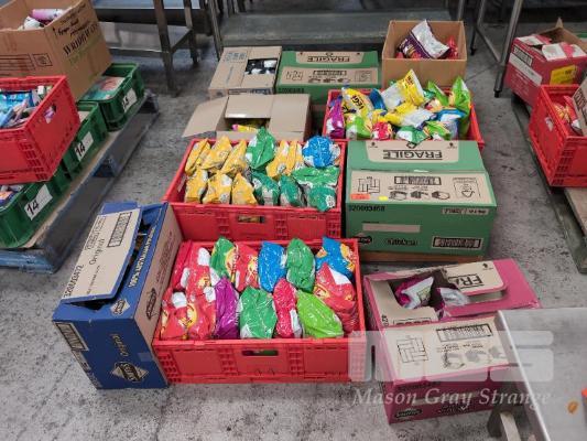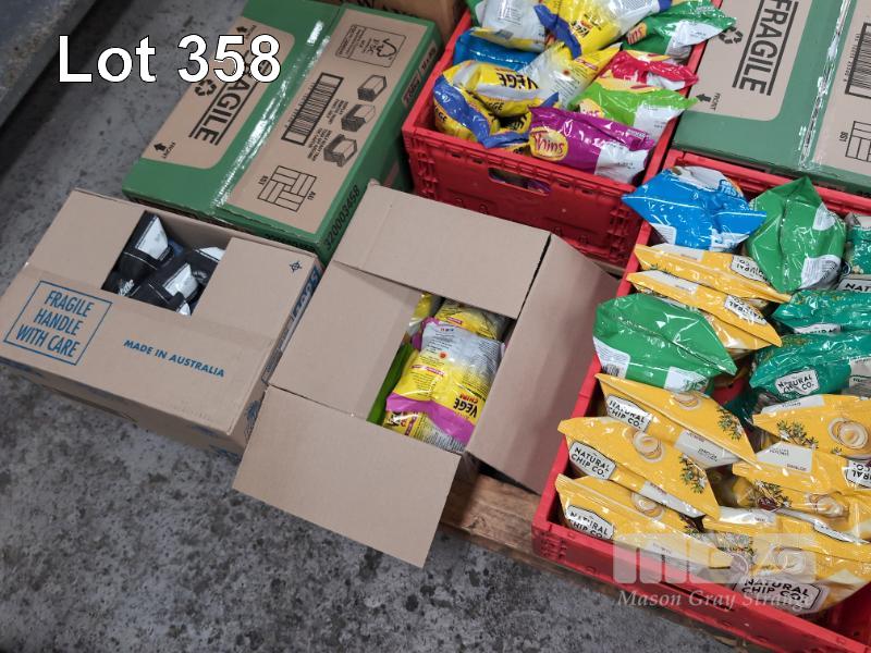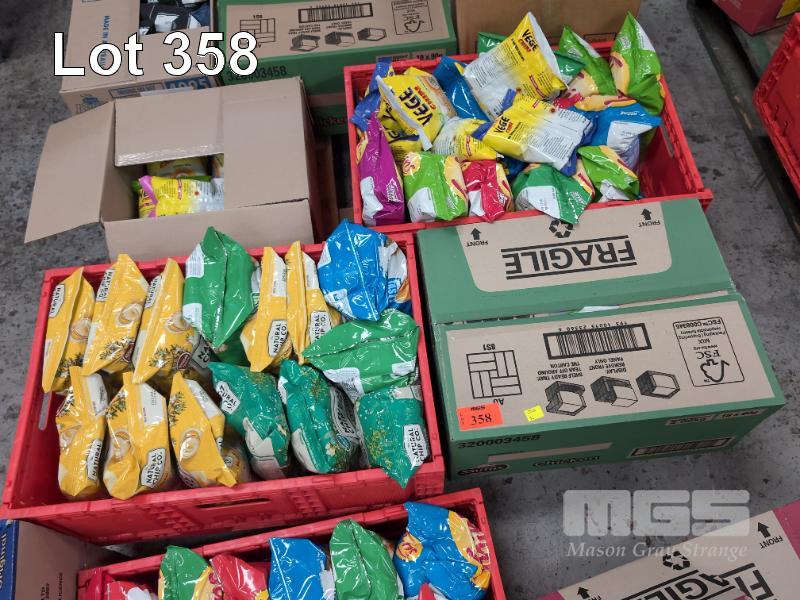 SELECTION OF CONVENIENCE STORE GROCERY STOCK. ASSORTED SNACKS. INCLUDES CHIPS & VEGE CHIPS ETC