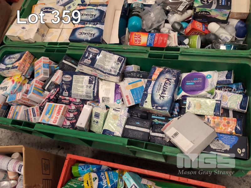 SELECTION OF CONVENIENCE STORE GROCERY STOCK. ASSORTED PERSONAL HYGIENE & HEALTH PRODUCTS. INCLUDES SHAMPOOS, DEODERANTS, TOOTHPASTE & TOOTHBRUSHES, BANDAIDS, TISSUES, NAPPIES, FEMININE HYGIENE, ANALGESICS, BIRTH CONTROL PRODUCTS ETC. ALSO INSECT REPELLENT & SEWING. CONTENTS 7 X CRATES & 1 X CARTON. CRATES NOT INCLUDED.