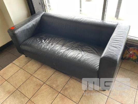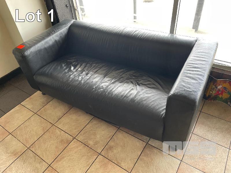 VINYL 2 SEATER COUCH, BLACK, AVERAGE CONDITION