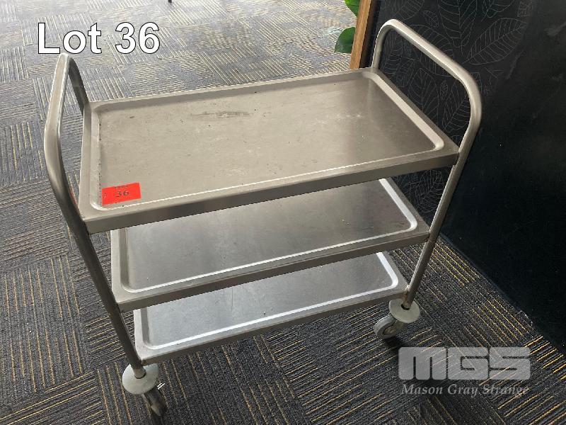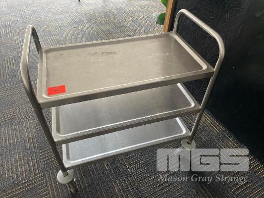 STAINLESS STEEL 3 TIER TROLLEY, 900 x 400mm, LOCKING CASTOR WHEELS