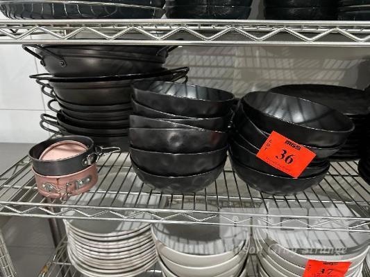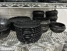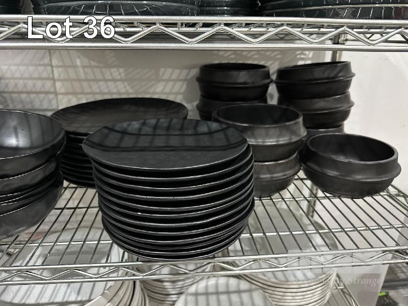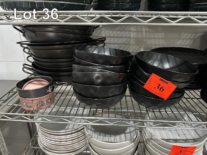 9 x BLACK SOUP BOWLS, 15cm, 12 x BLACK PLATES, 21cm, & 10 x BLACK PLATES, 27cm, 13 x BLACK BOWLS, 13cm & 8 x SERVING DISHES, 27cm