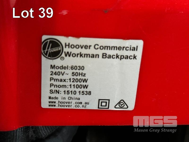 COMMERCIAL BACKPACK VACUUM, HOOVER MOD: 6030 240V